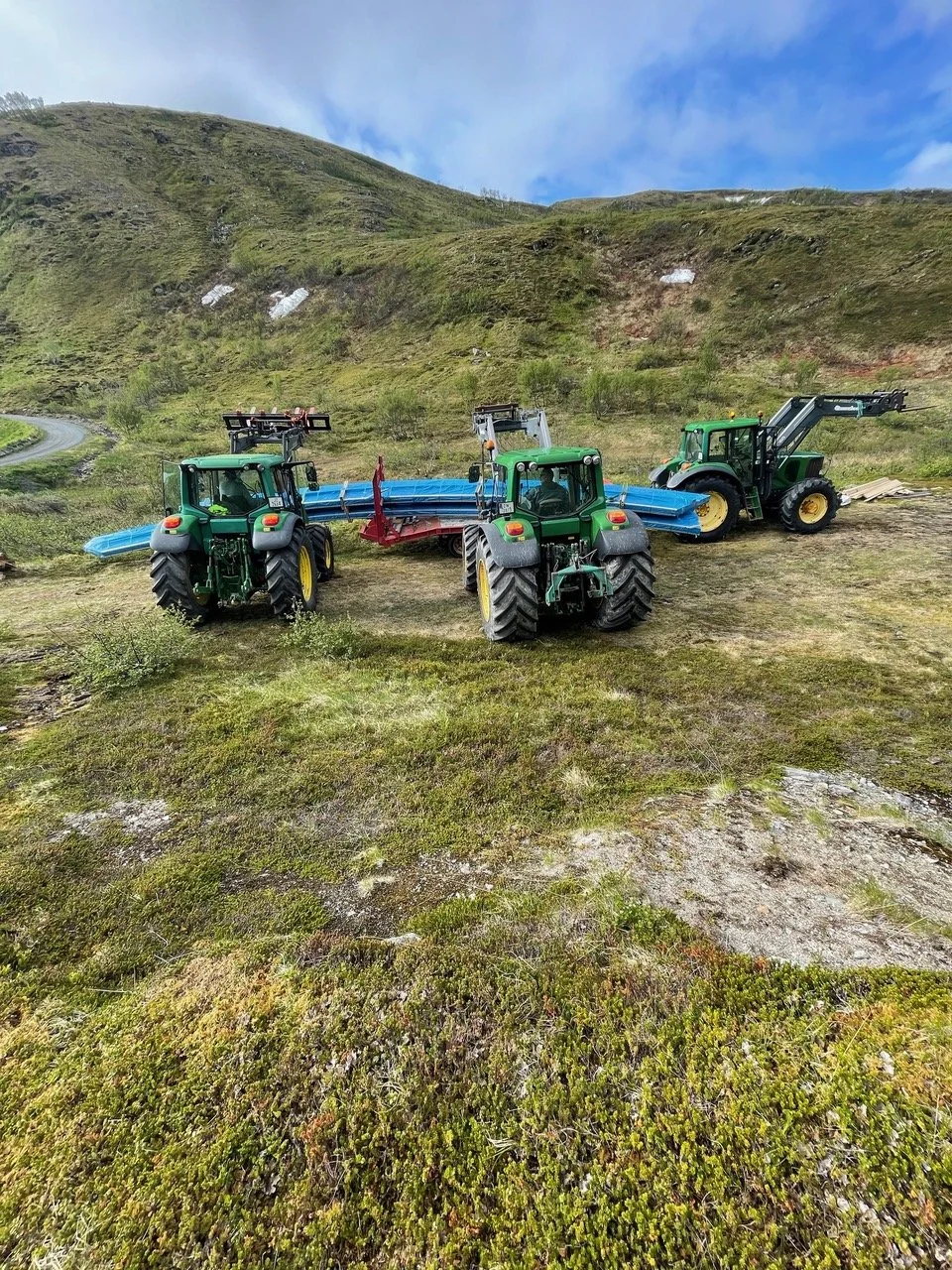 Tre traktorer i sving for å minske på skader, to innleide av Einar Røe og vår egen. Jari Hokkanen var en meget god traktorkjører, her er det synkronkjøring.