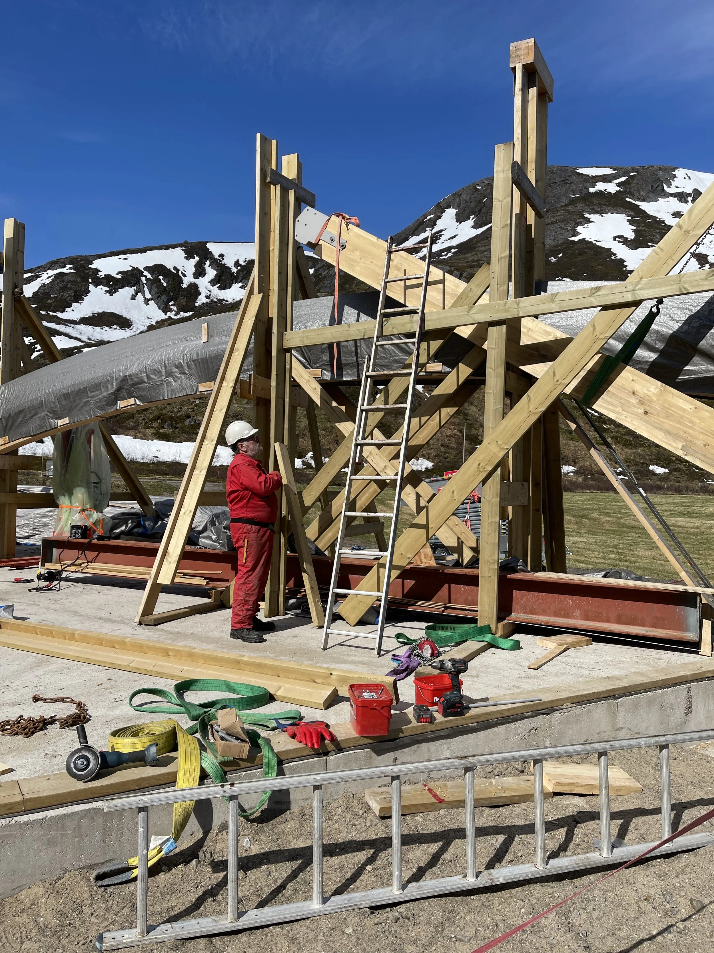 Neste søyle blir to meter høyere enda. Den kommer i midten av bygget.