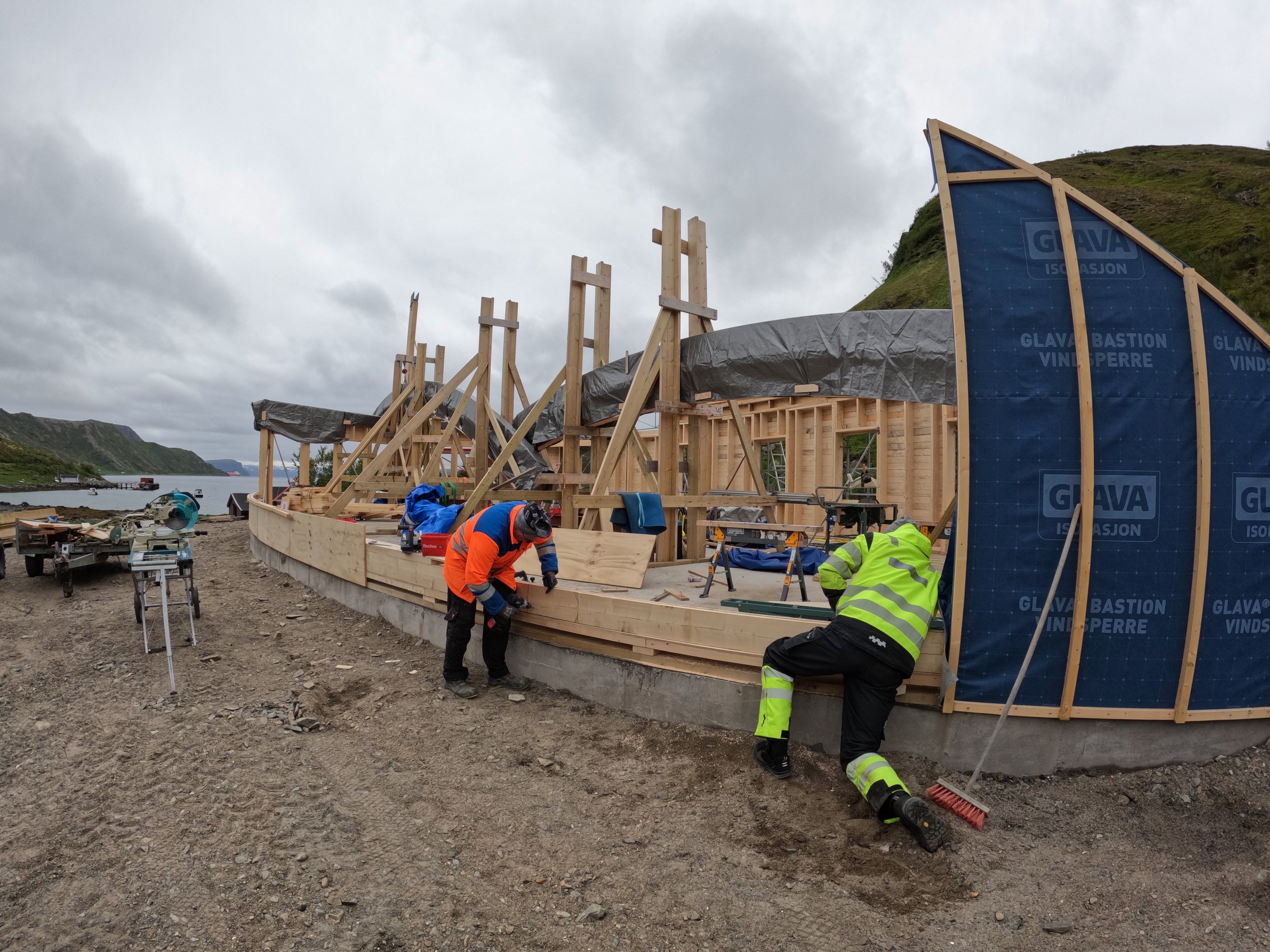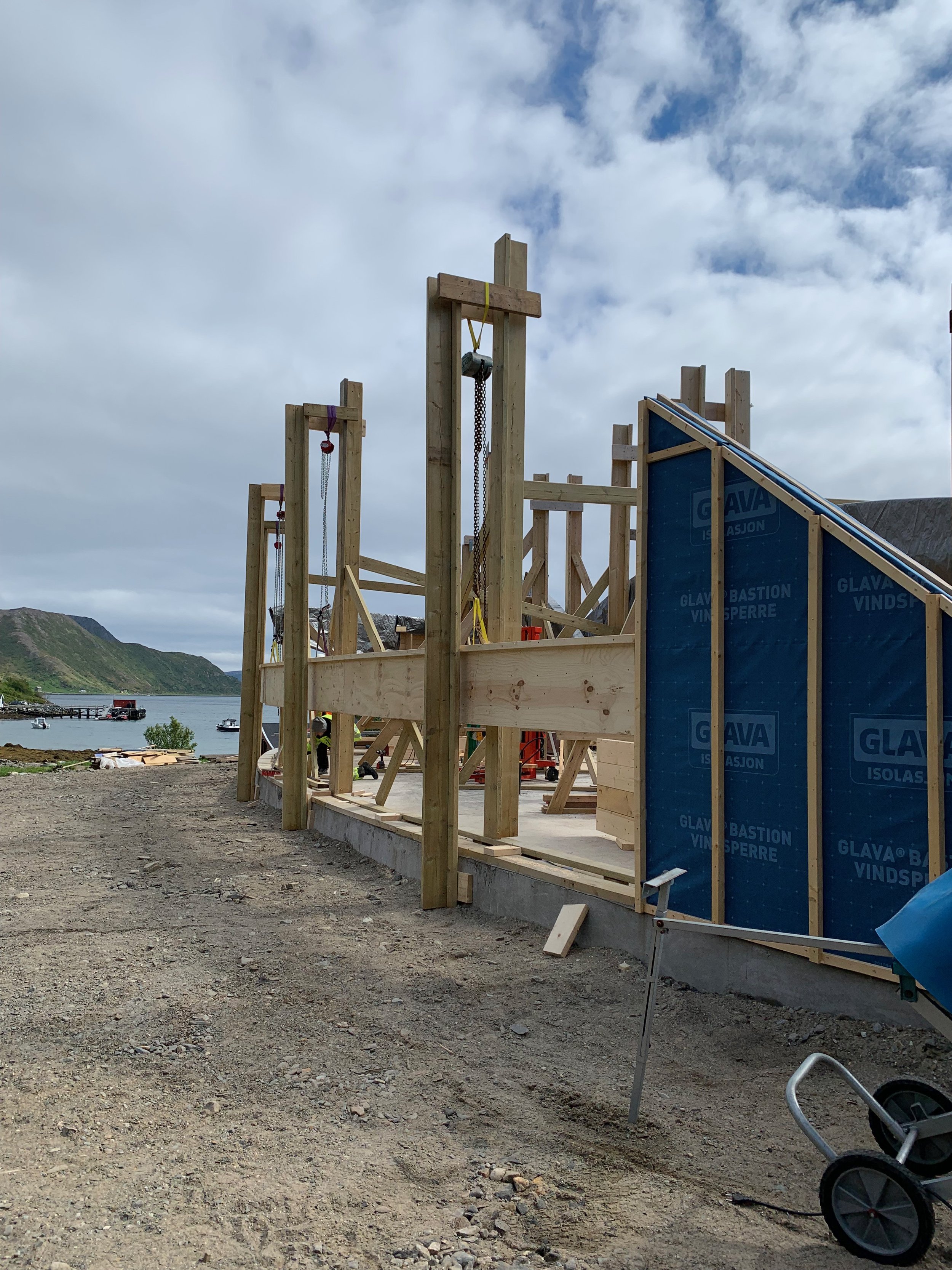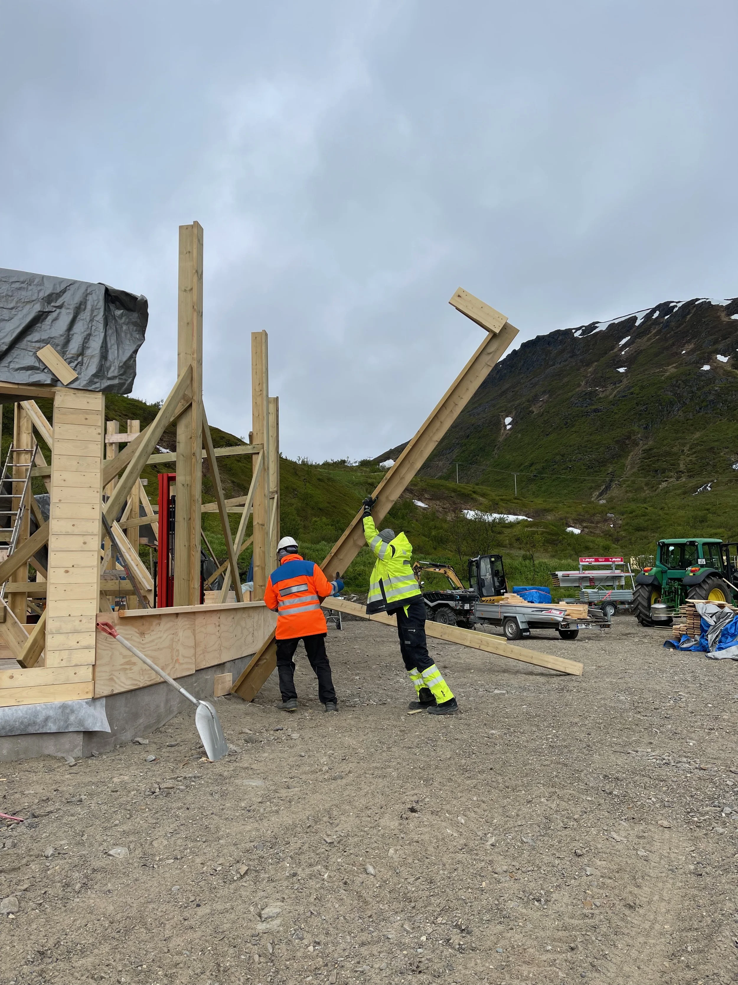 Heis må lages for å løfte opp den 13 m lange buede topplina.