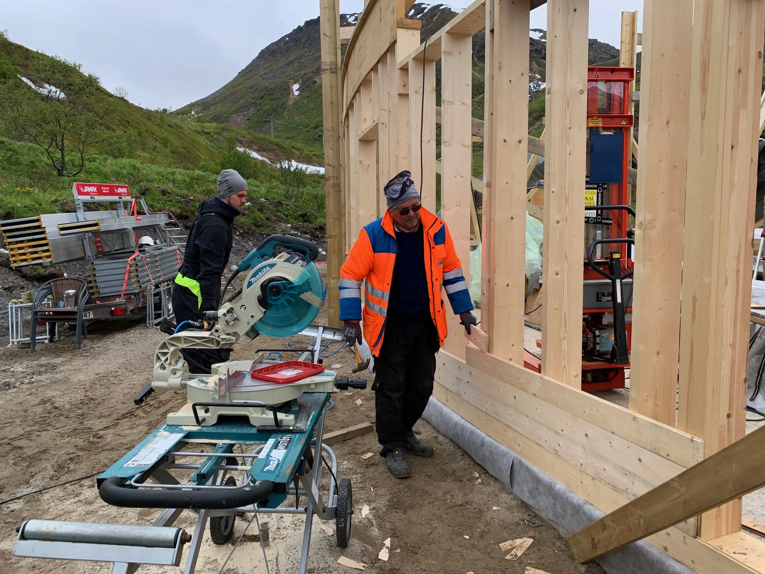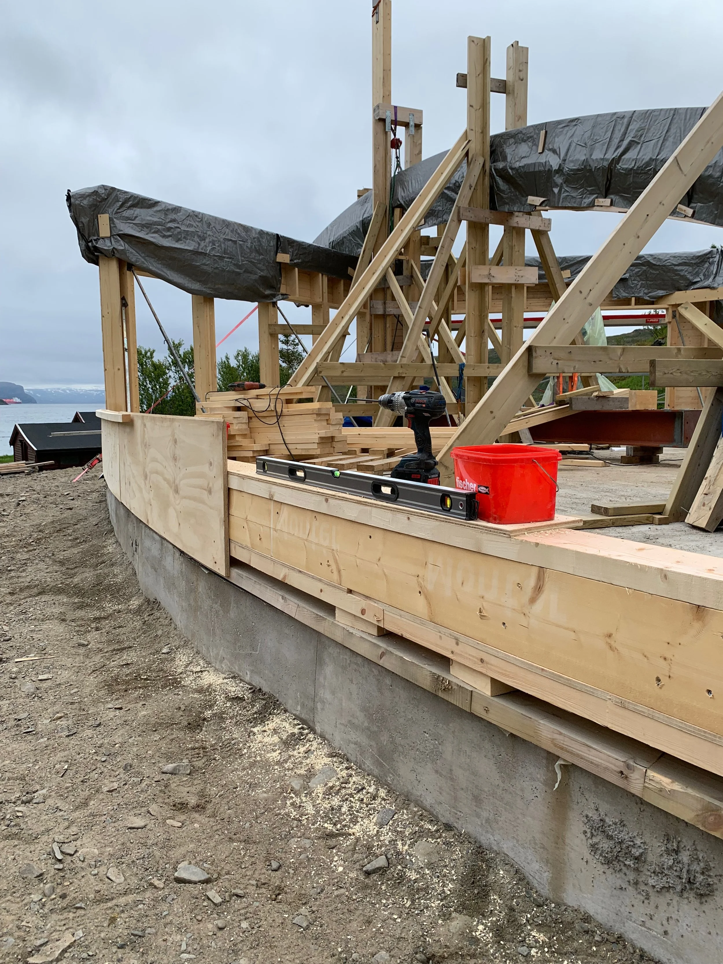 topplina til den buede langveggen er enklest å lage nede, da har en kontroll på formen.