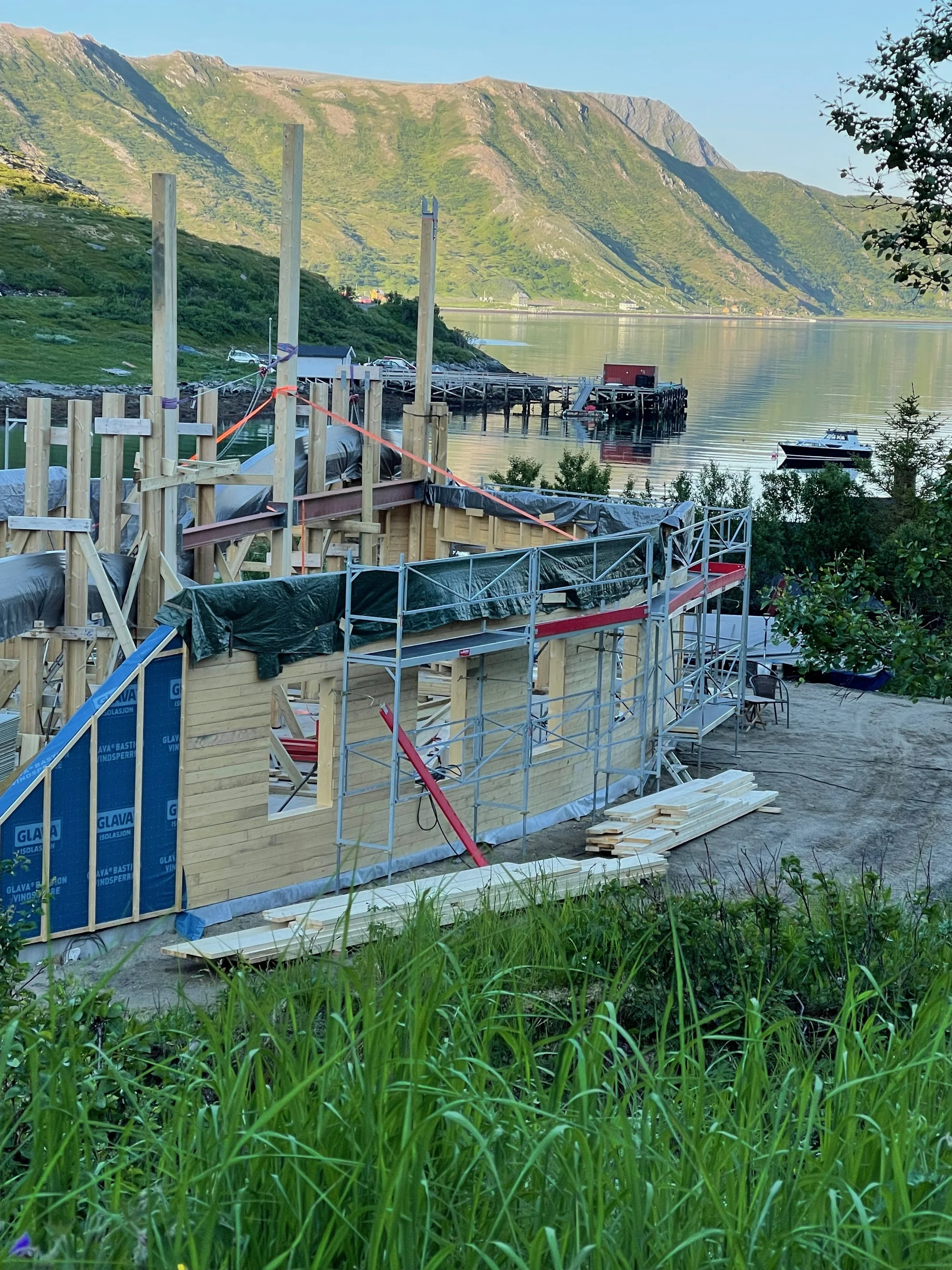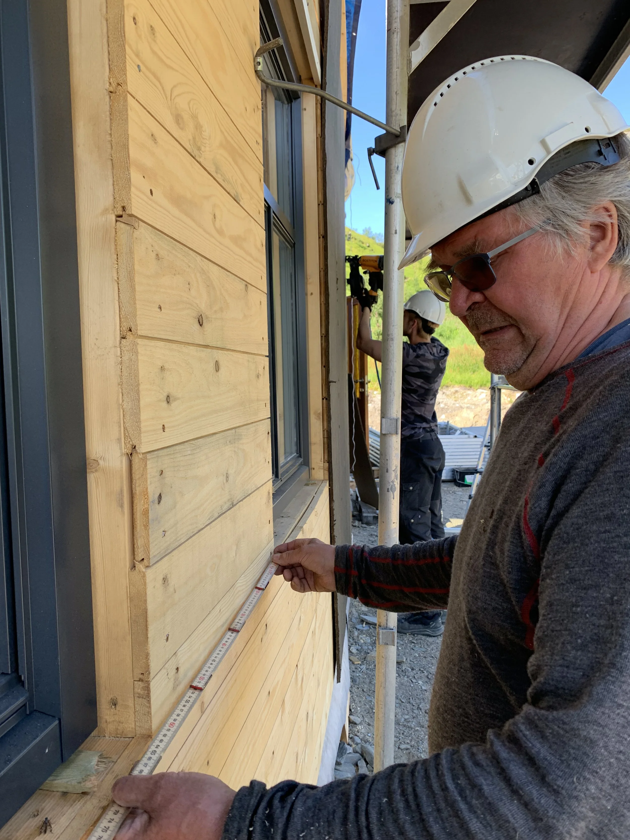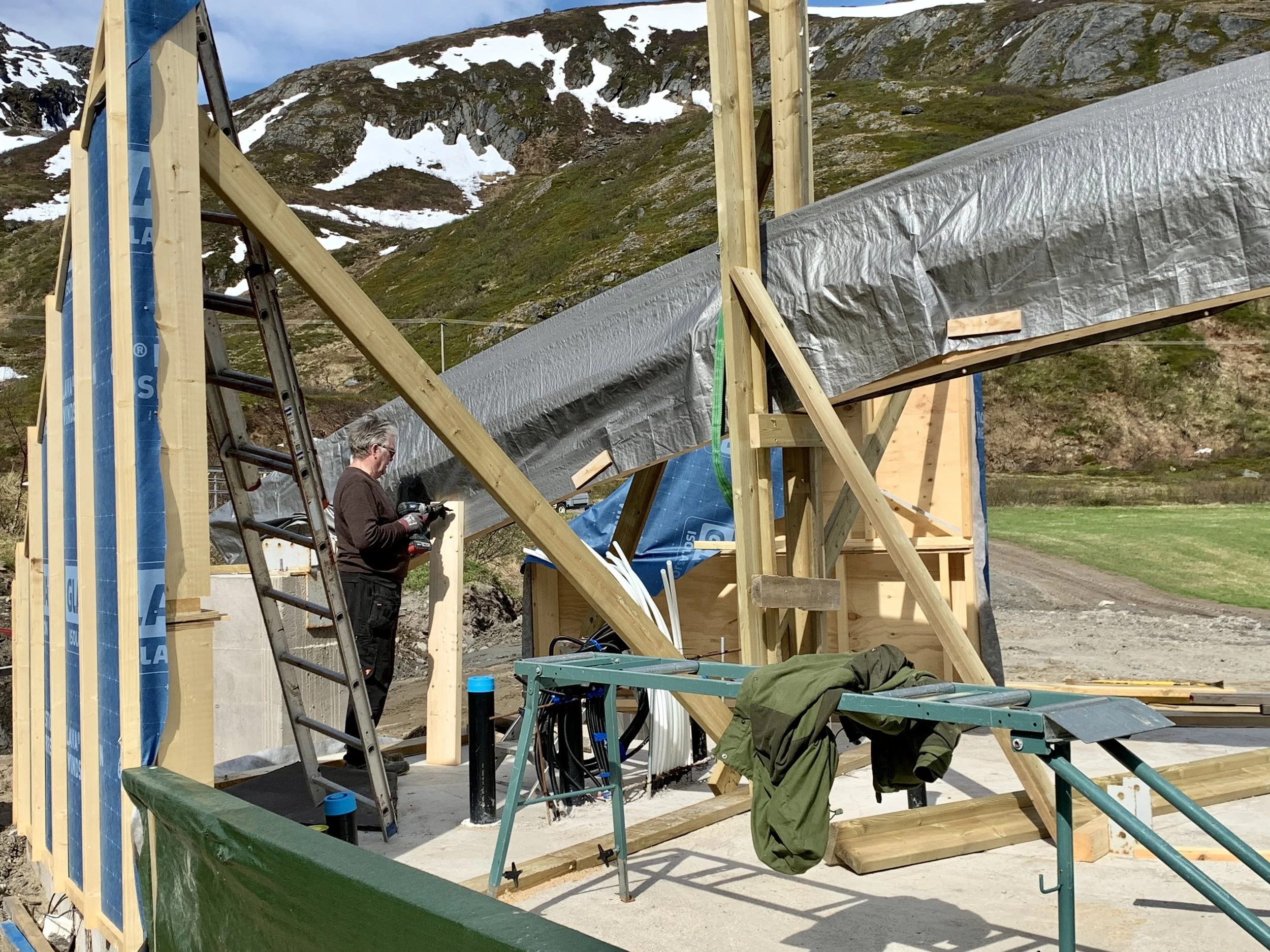 Da vinteren slapp taket - var det midt i mai ? -så begynte Knut å sette på moduler i bak kant som han hadde laget ferdig på forhånd-