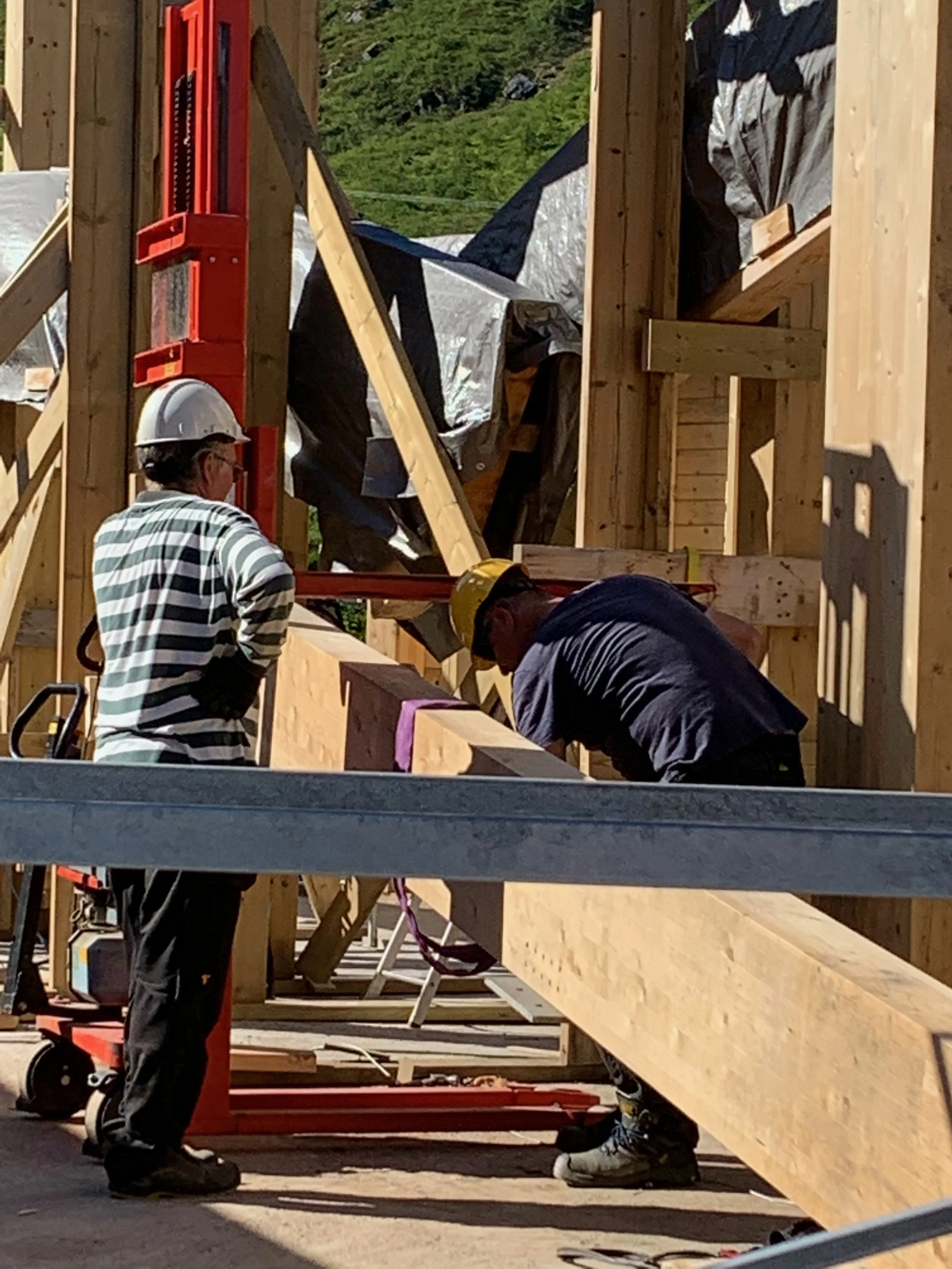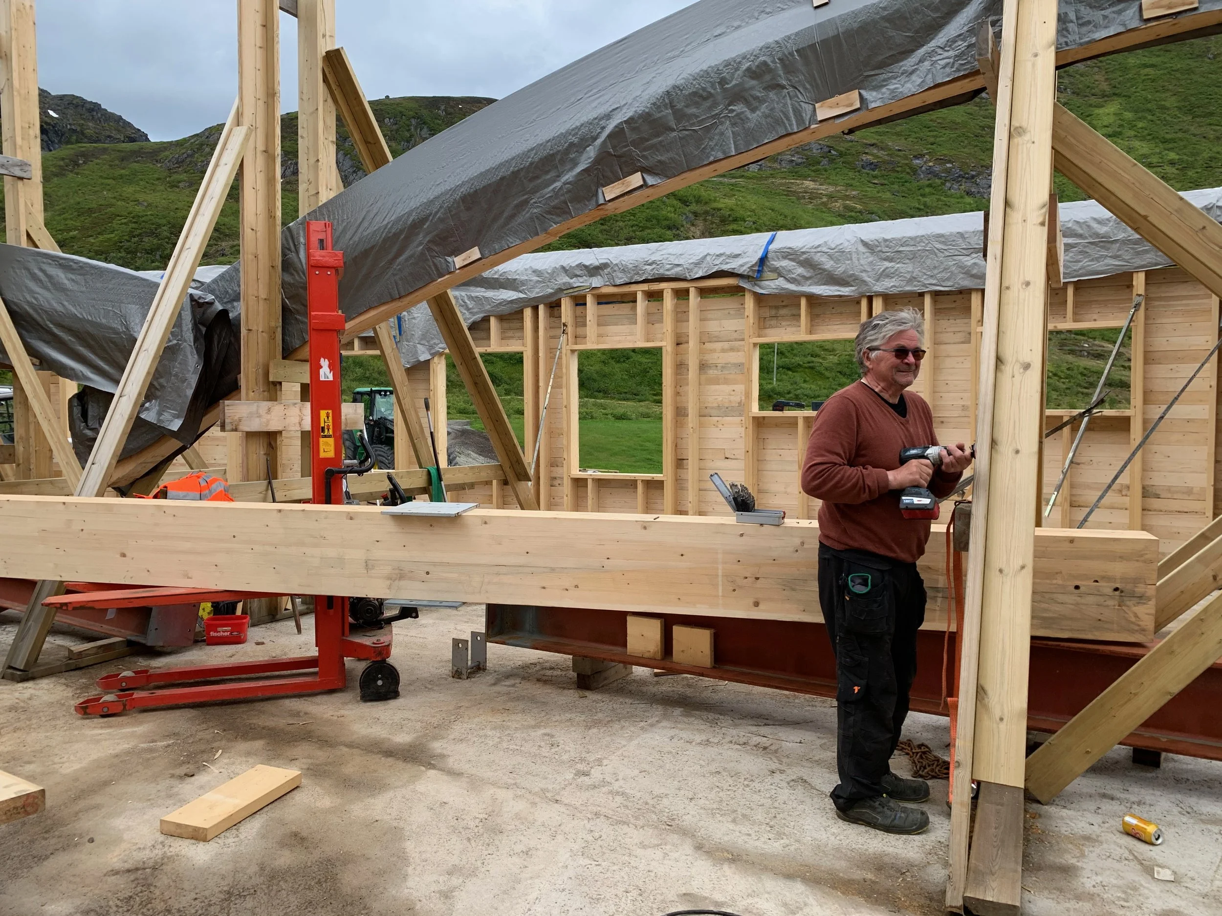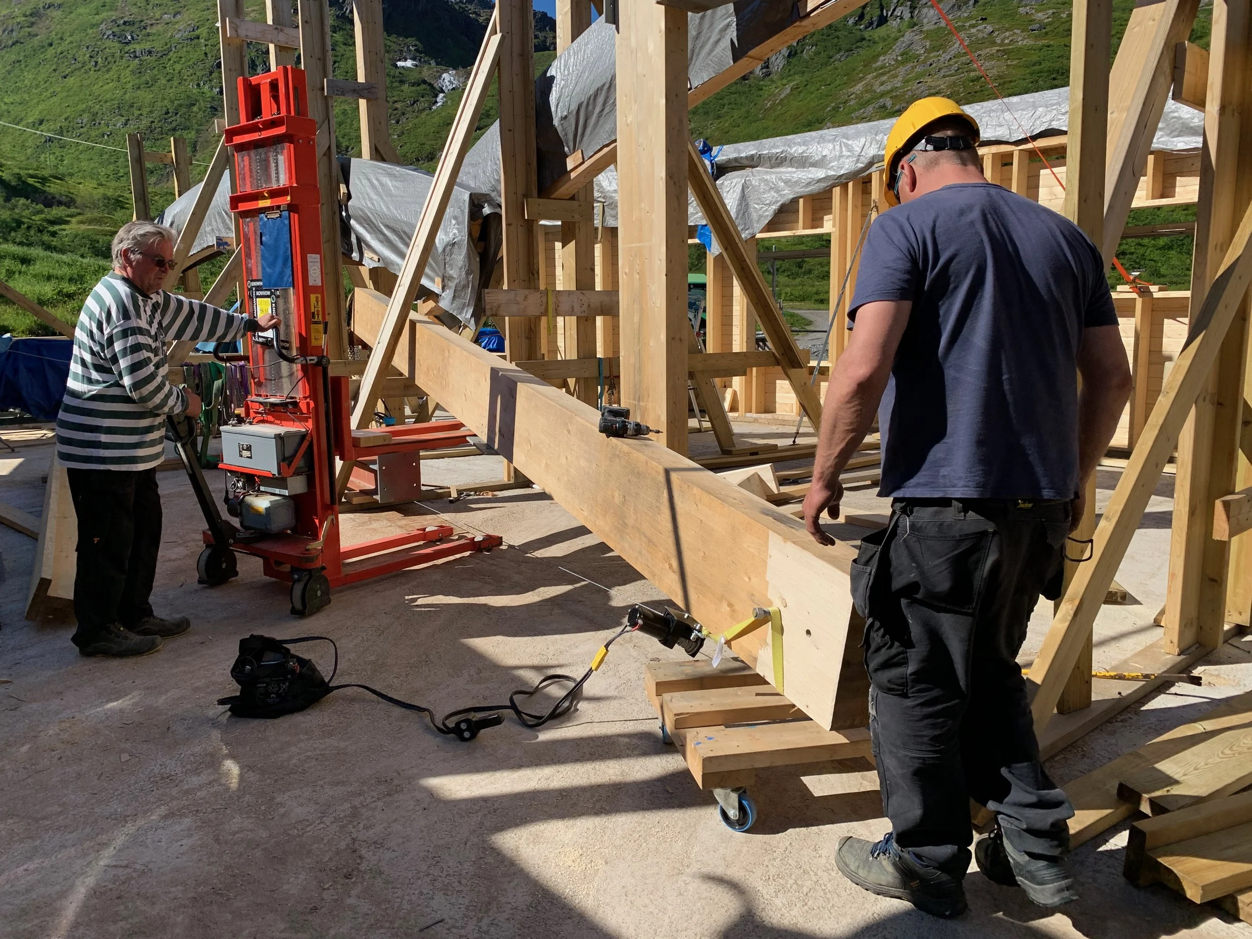 Det må mye omtanke til for å heise disse store søylene. Det ble enklere å jobbe når jeg fikk en fagmann med erfaring.
