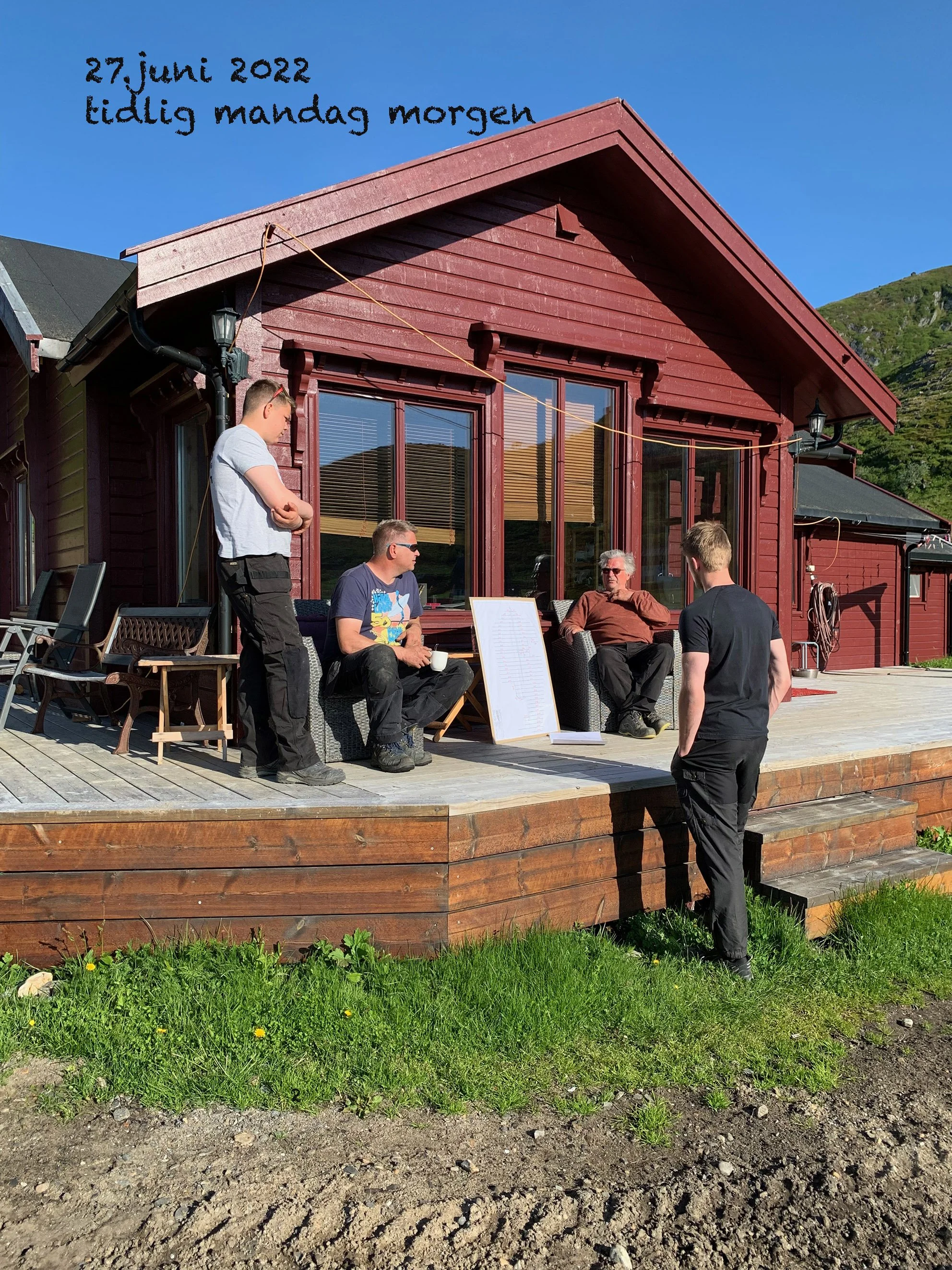 Byggemøte med innleid snekker Jan Ottar Mjelde og hjelpeguttene Joakim og Adrian.